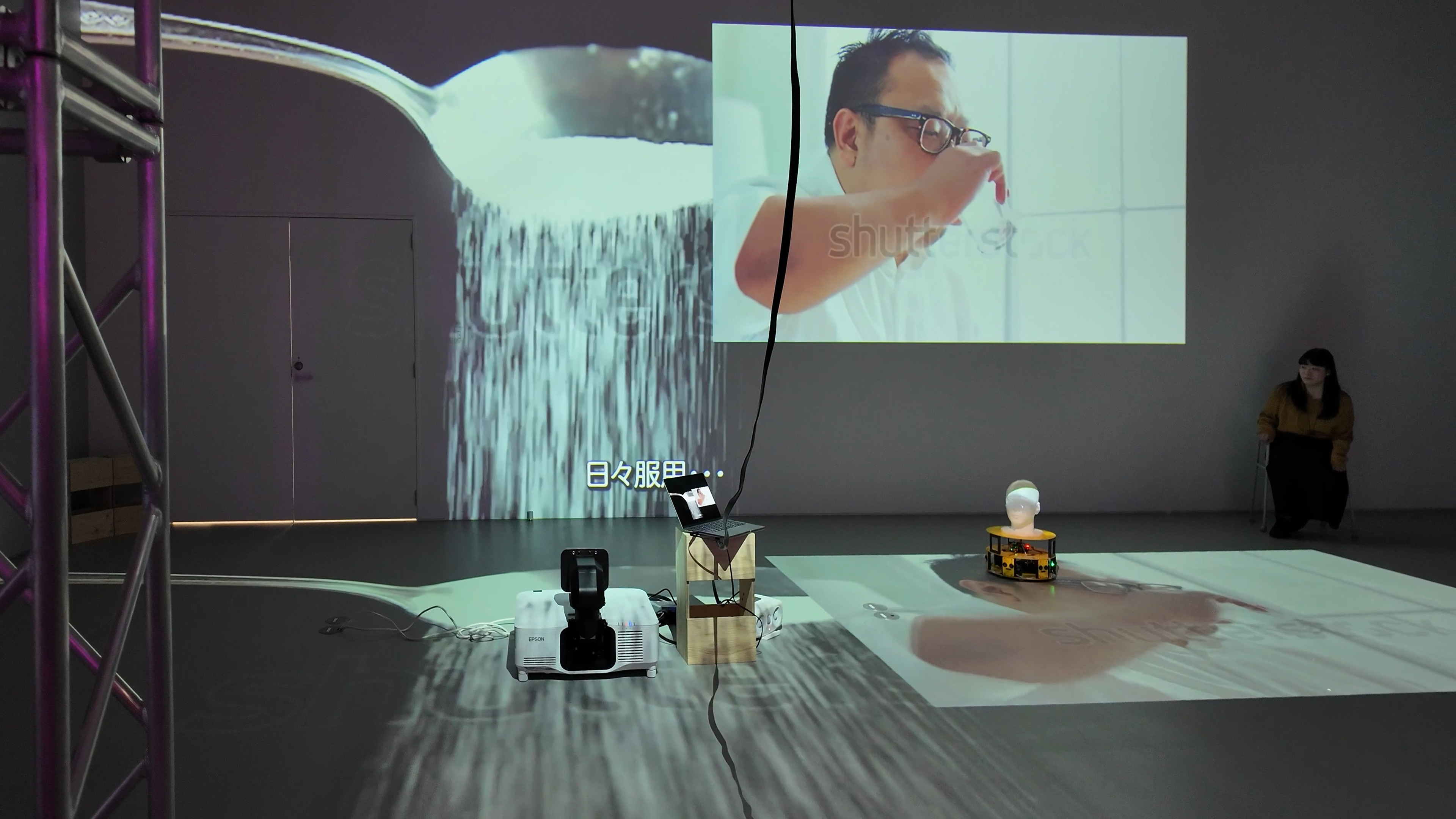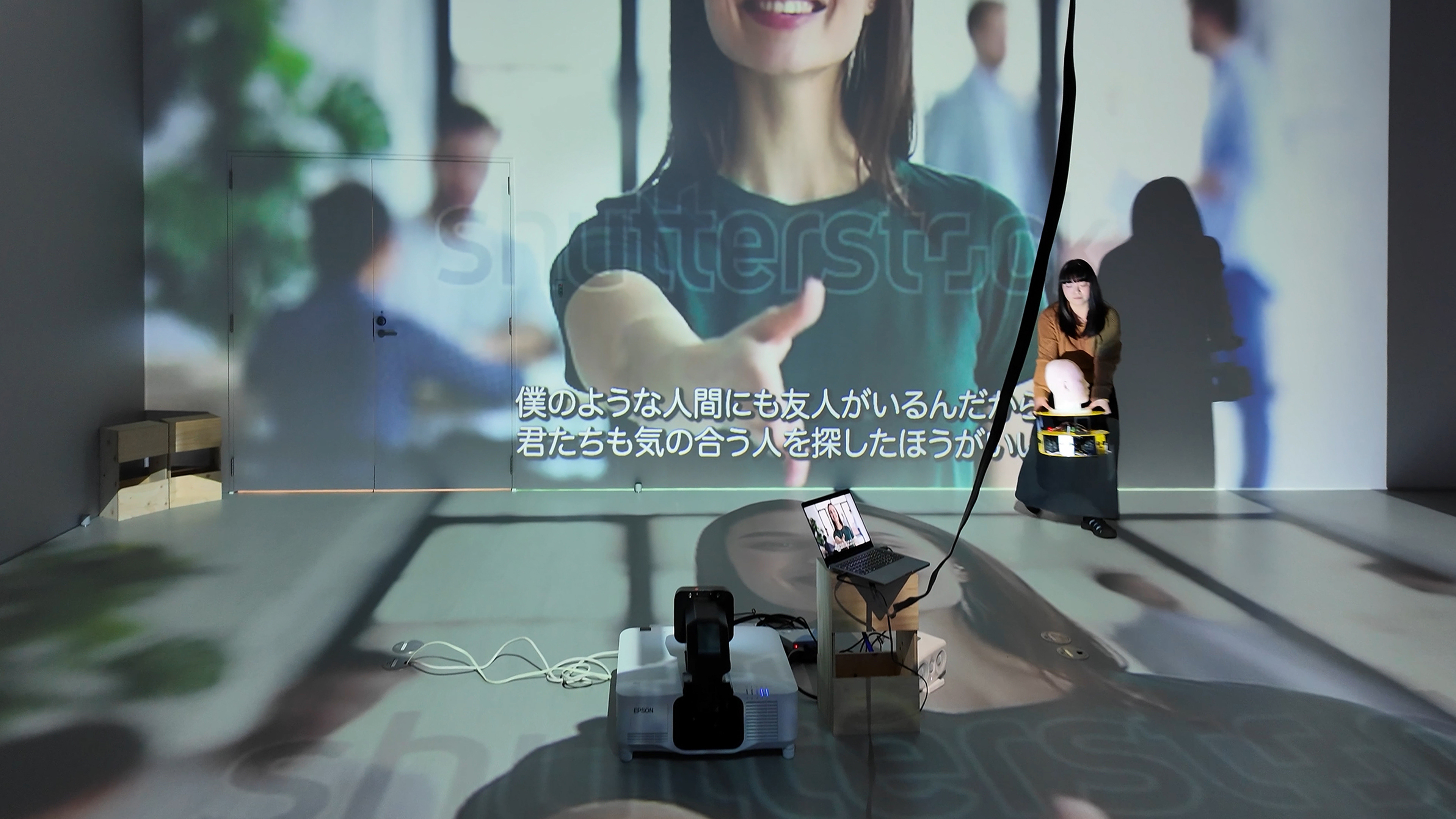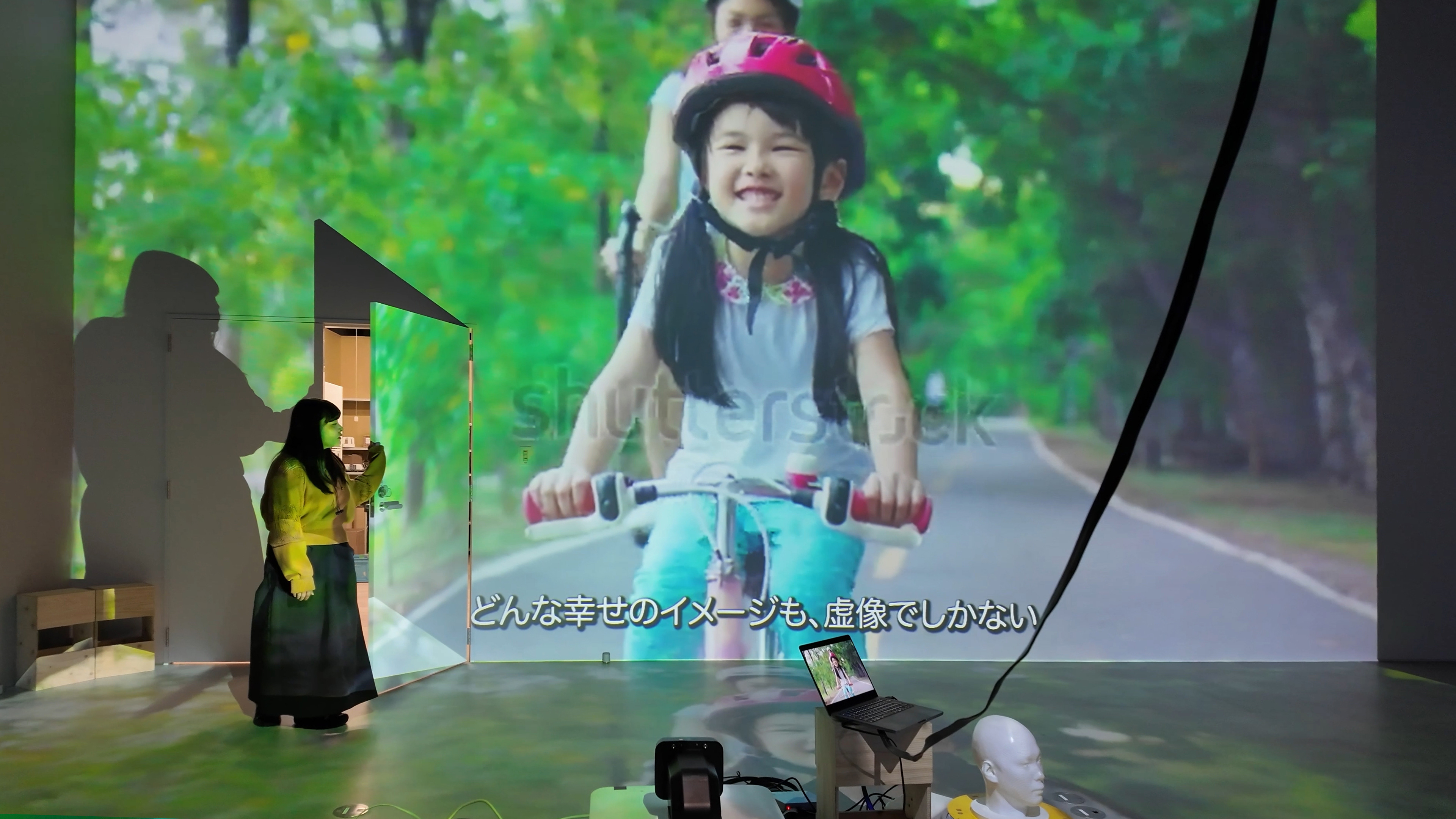 「幸せとは何か。」ウィニーは、それを私たちに教えてくれる。ウィニーは、グルグルと動き回る台に首から上だけを乗せ、意気揚々と幸せについて教えてくれる。一緒に踊って、カメラに向かって一緒に笑って、同じものを見て、一緒に歩くだけ。そう言い放つウィニーを乗せた台がアクティングエリアを出てしまいそうになった時、私はウィニーをアクティングエリアの中央に戻す。