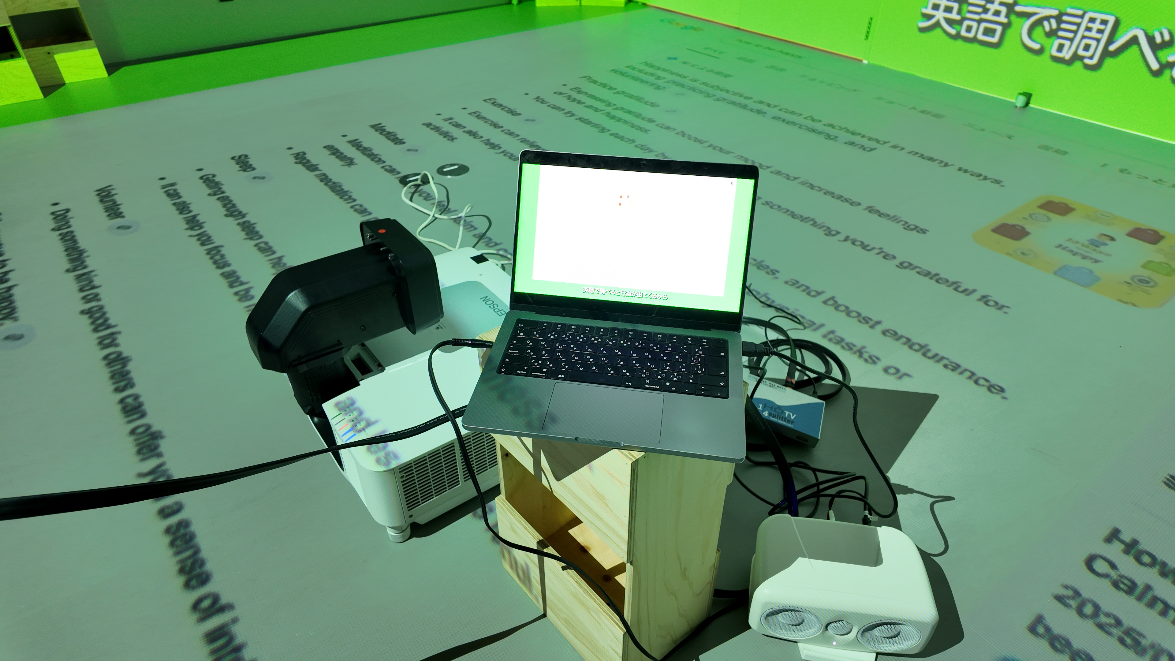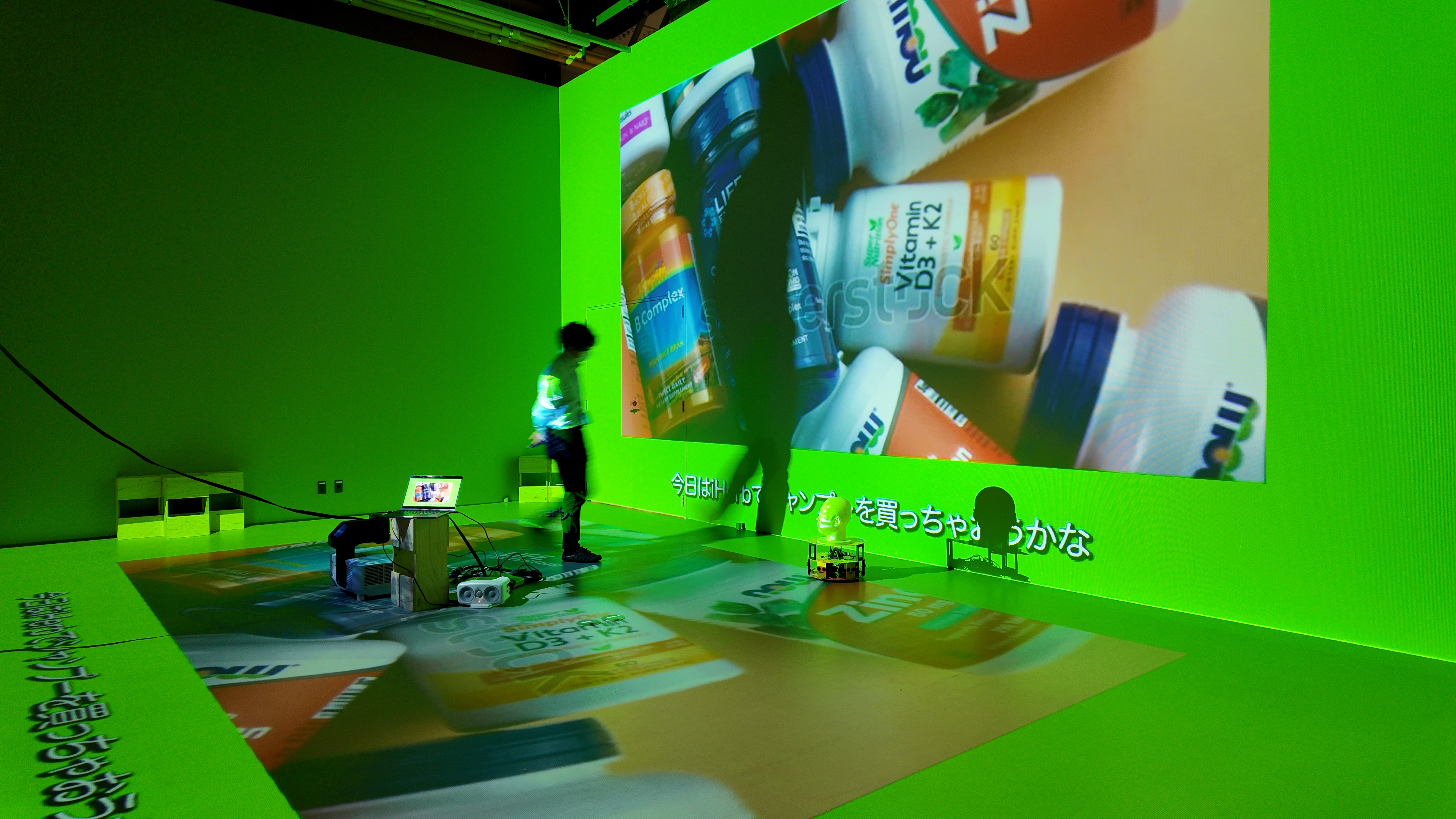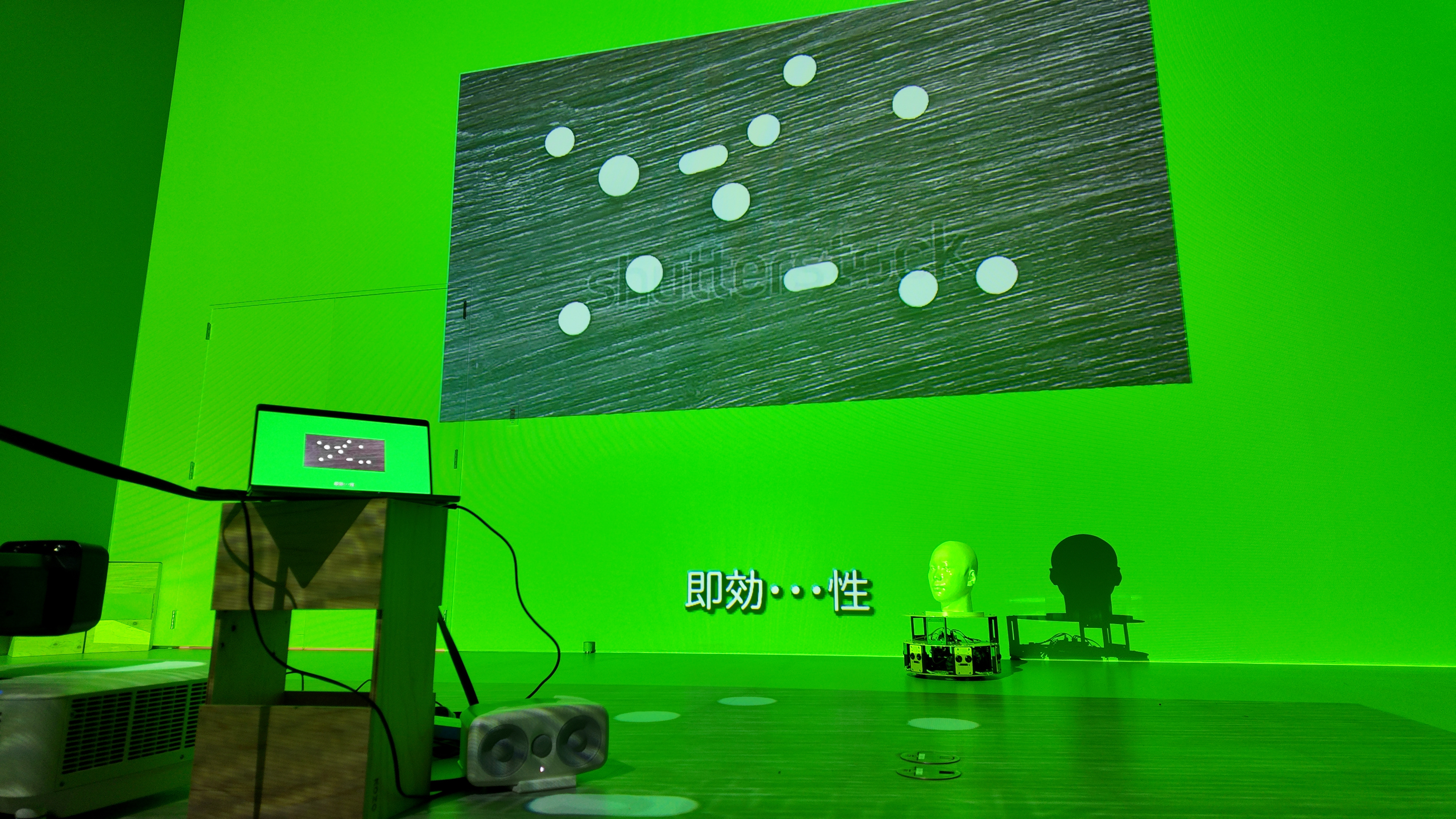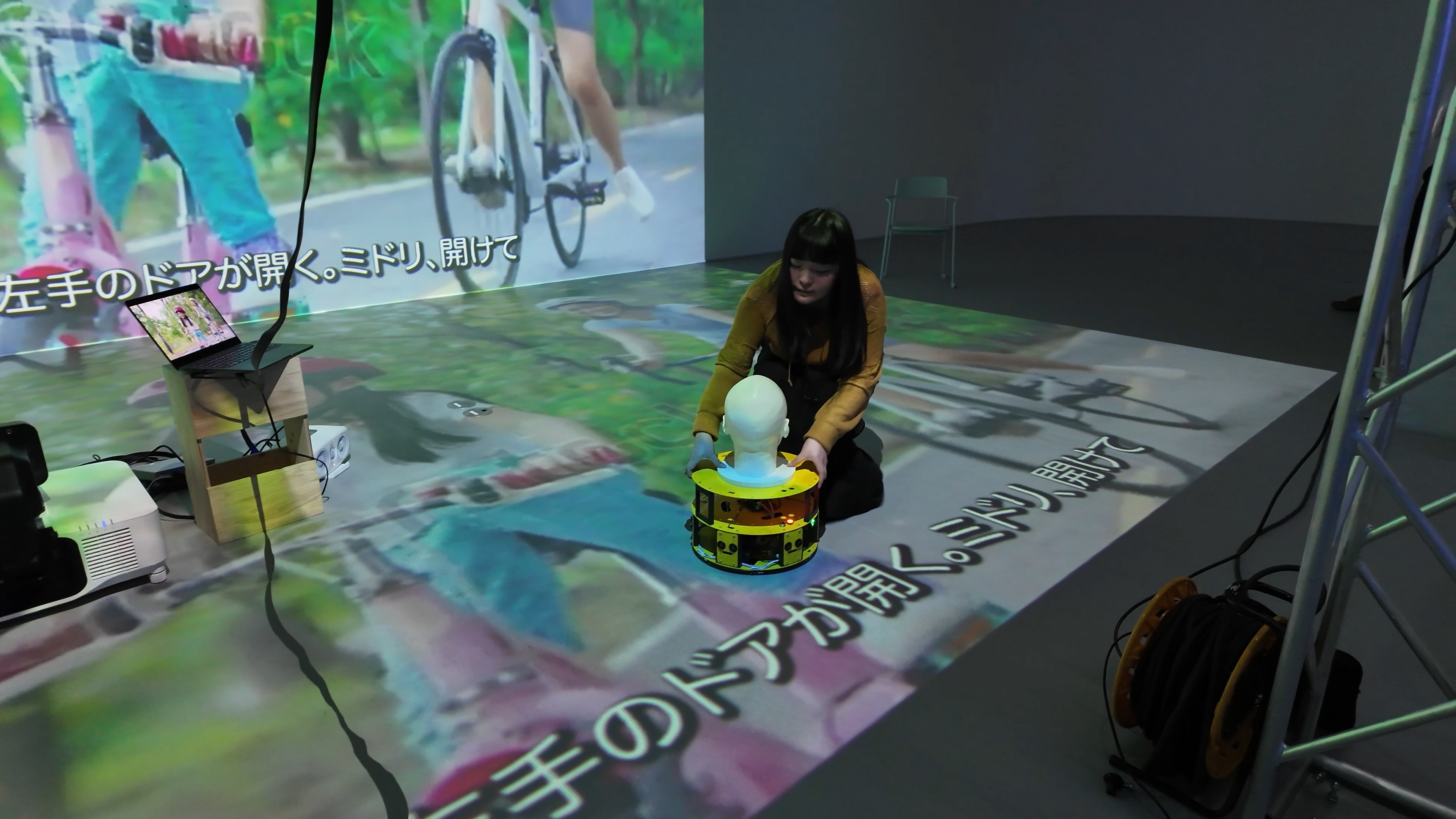 「幸せとは何か。」ウィニーは、それを私たちに教えてくれる。ウィニーは、グルグルと動き回る台に首から上だけを乗せ、意気揚々と幸せについて教えてくれる。一緒に踊って、カメラに向かって一緒に笑って、同じものを見て、一緒に歩くだけ。そう言い放つウィニーを乗せた台がアクティングエリアを出てしまいそうになった時、私はウィニーをアクティングエリアの中央に戻す。