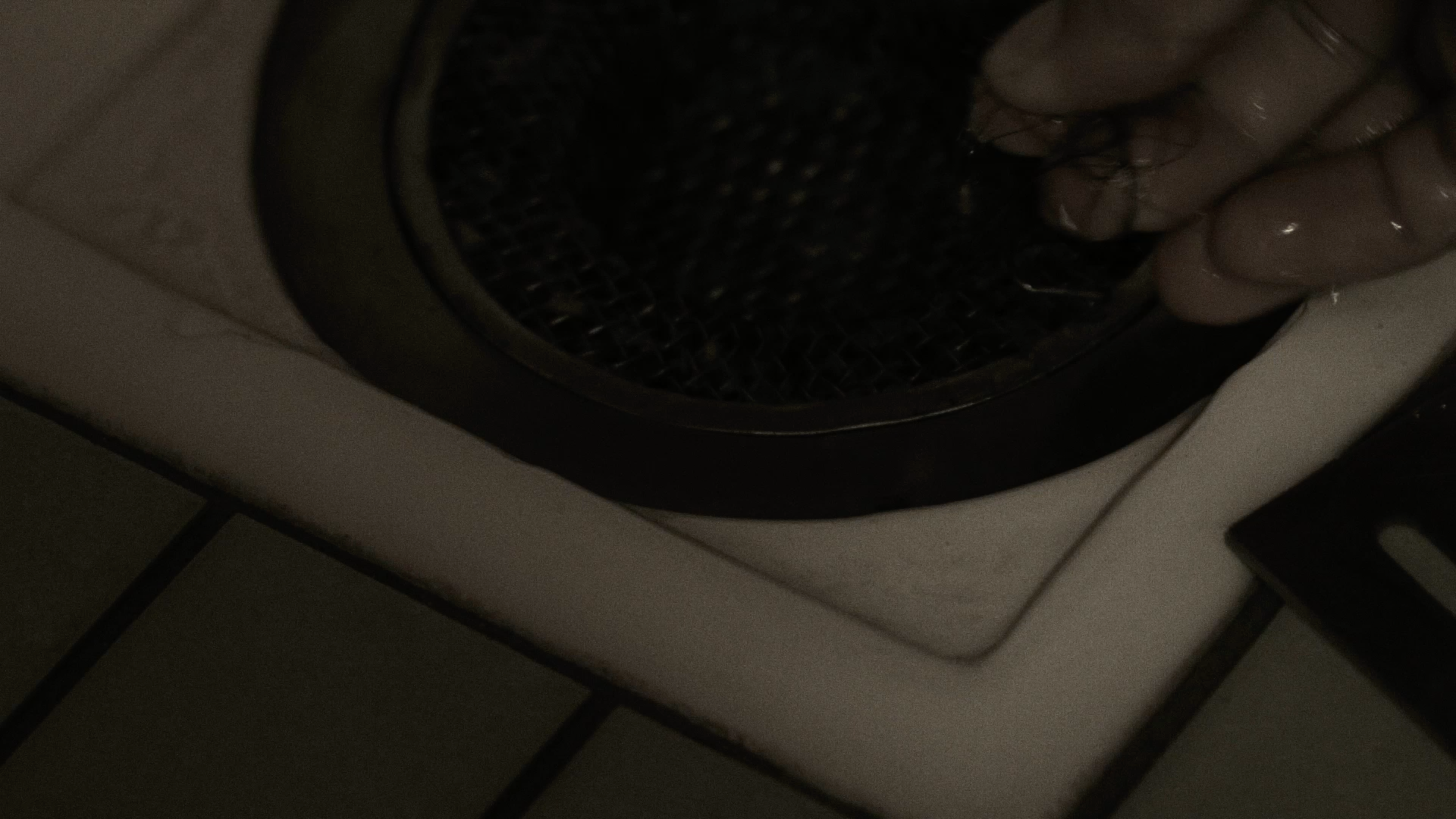 Scenes of daily life—washing dishes, showering, cleaning the drain—are interwoven with shots of a performance involving direct contact with rainwater.