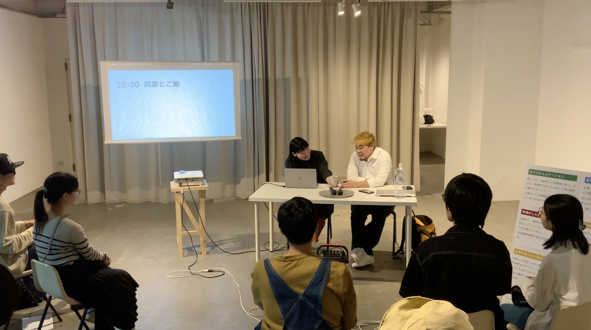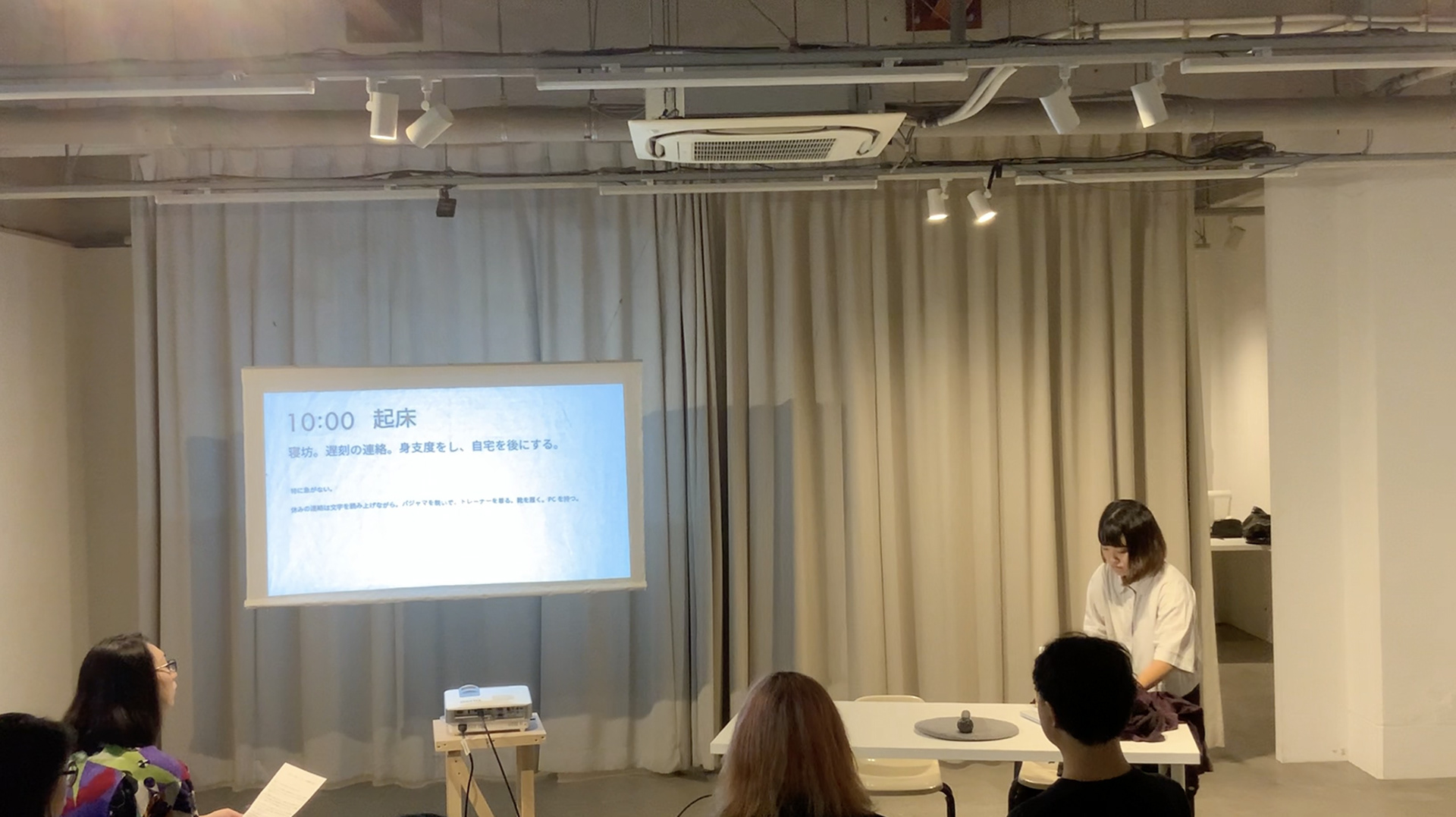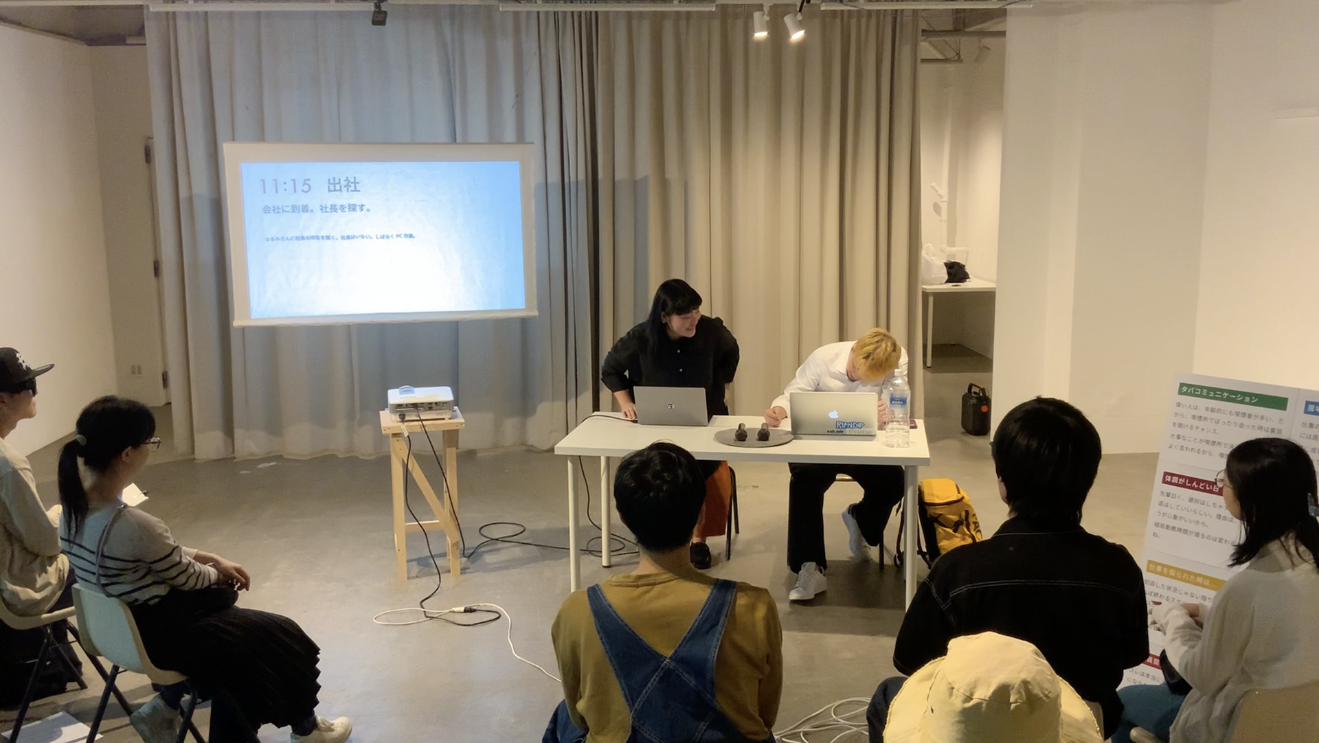 作・演出をつとめる宮森の実体験を基にした、IT企業に勤務する会社員の1日を3人のゲストに再現してもらう上演作品。